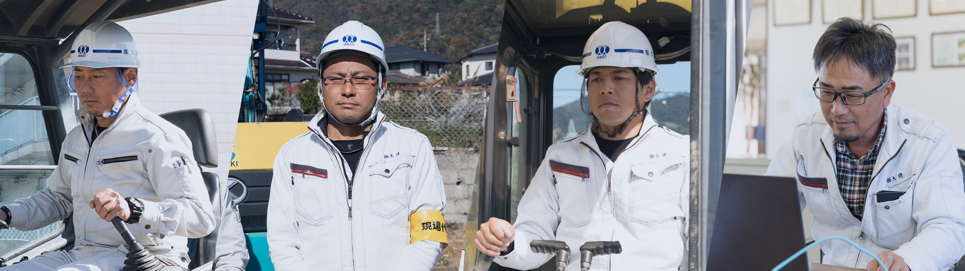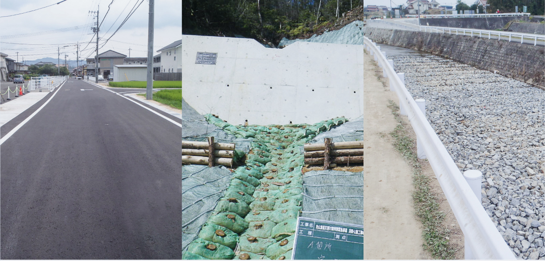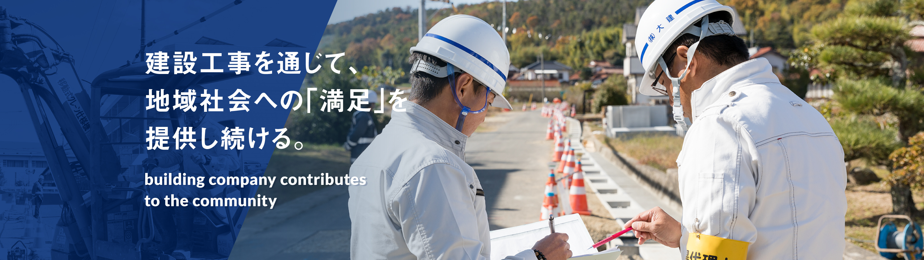 道路改良、河川改良、災害復旧工事などを通じて、地域社会への「満足」を提供することを理念に活動します。