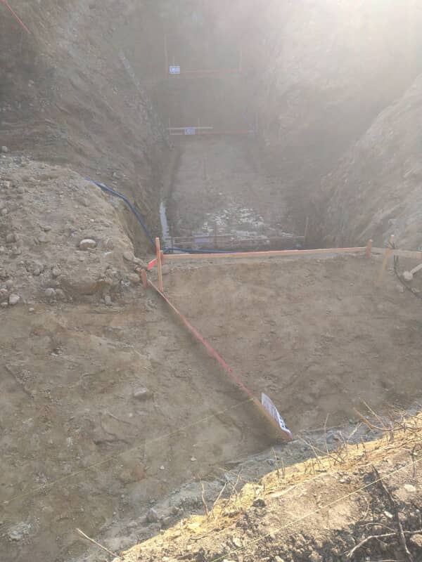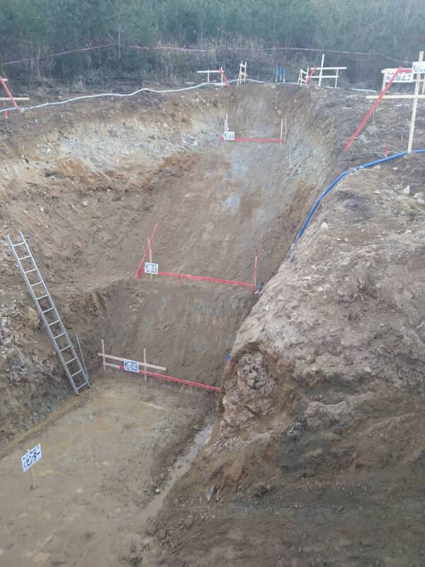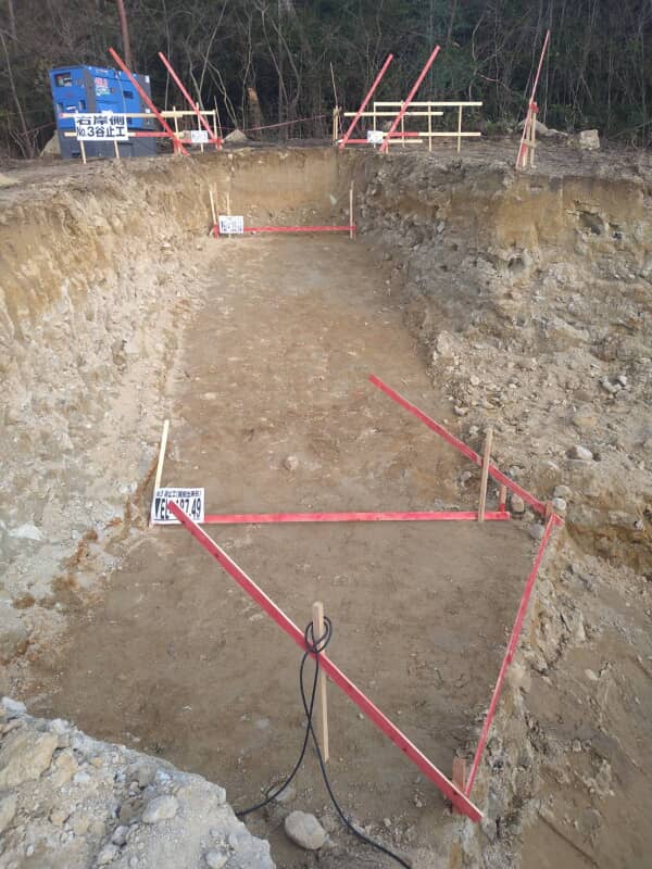高さ約10m掘ってコンクリート擁壁を作る準備をしています。